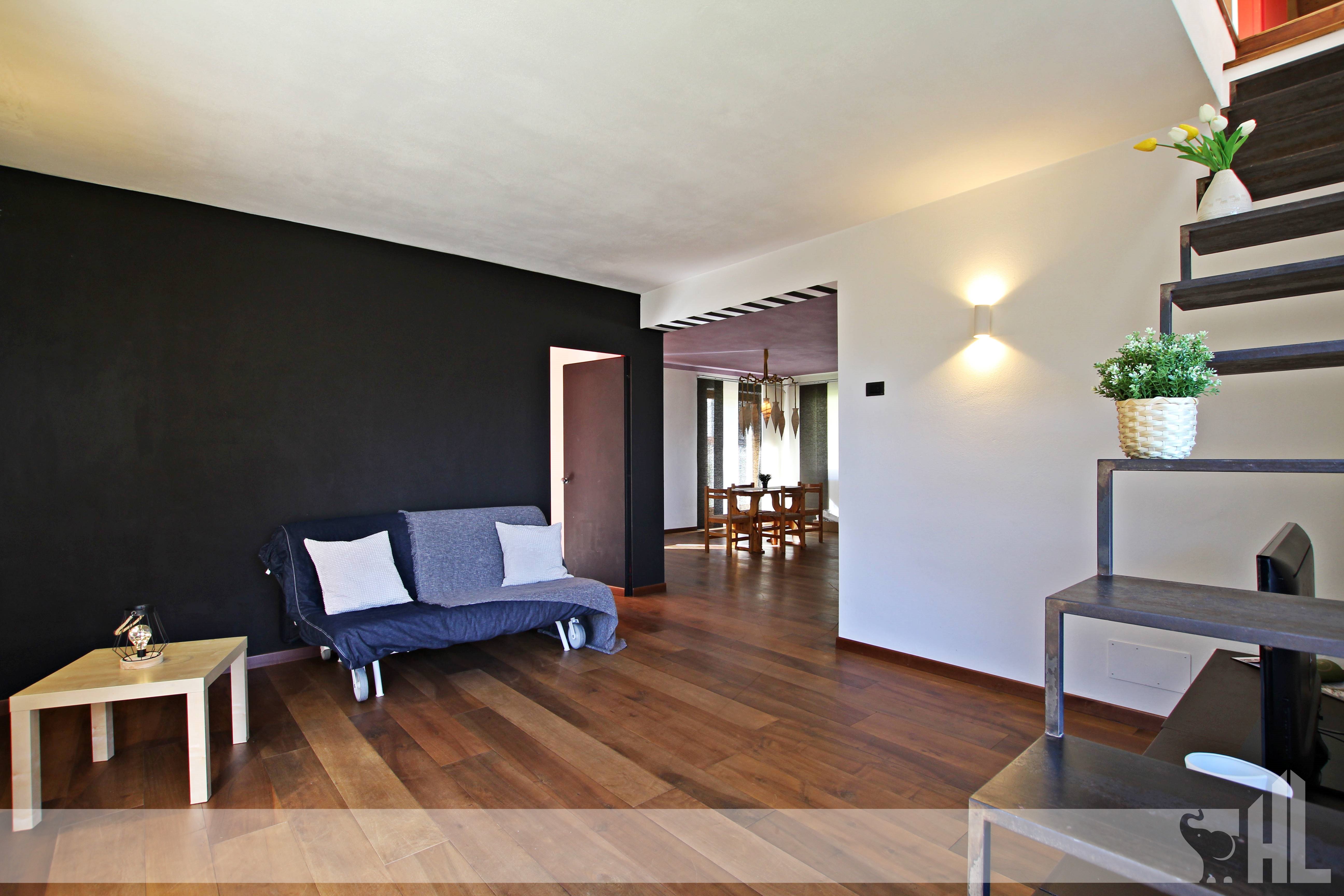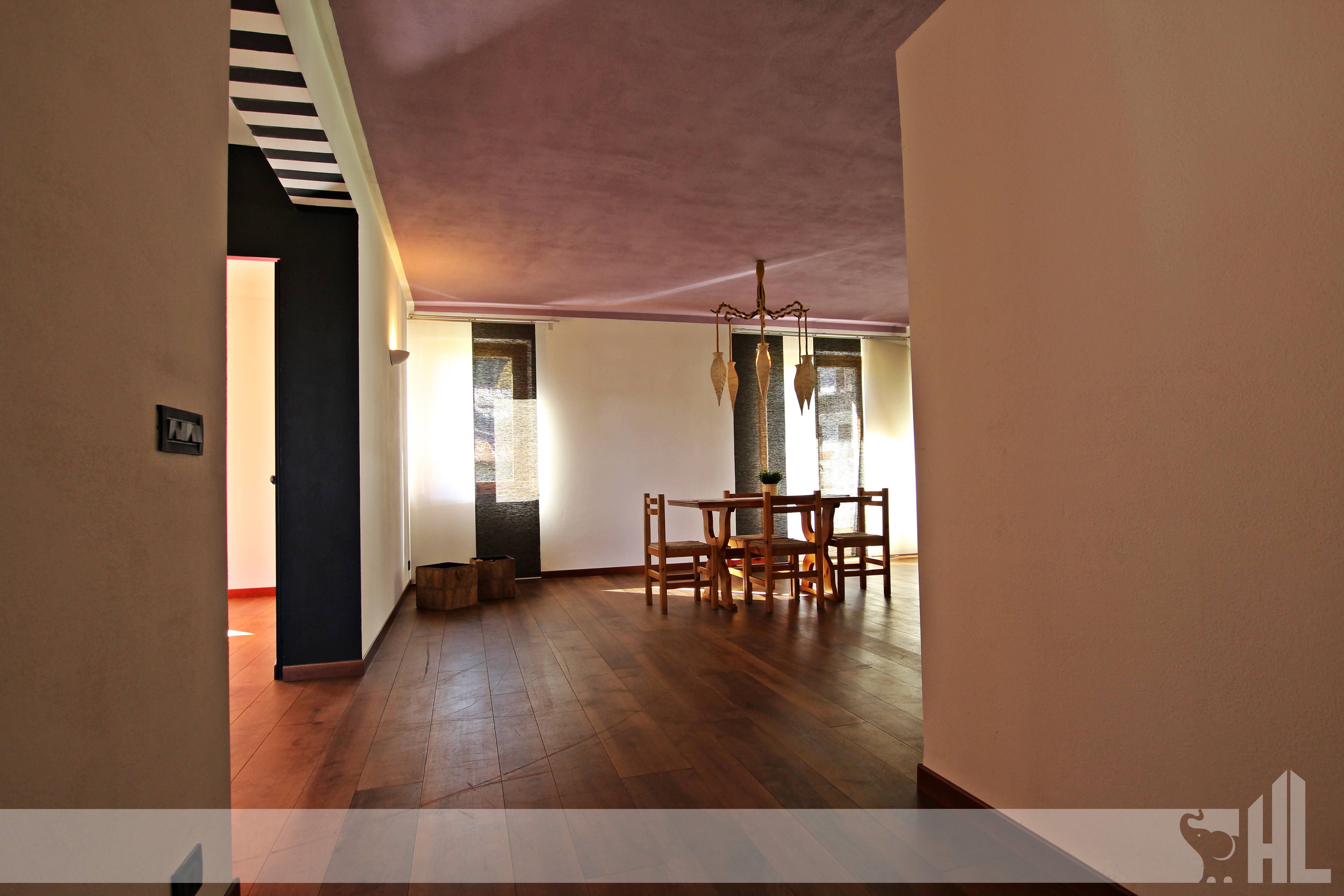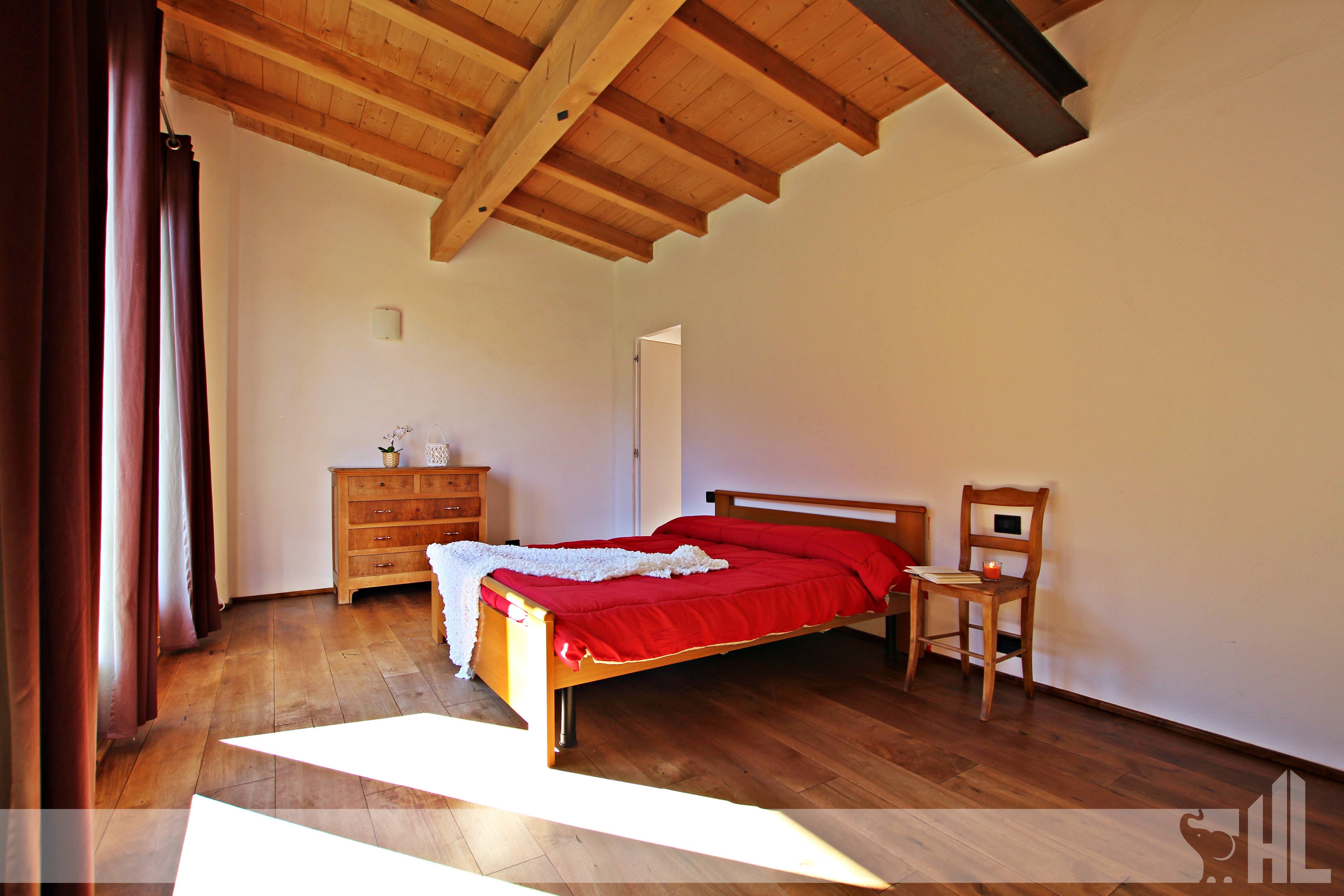 L'appartamento, si sviluppa tra primo e secondo piano mansardato di una casa bifamiliare. L'abitazione colpisce subito per i suoi spazi moderni in piacevole contrasto con il paesaggio bucolico e l'edificio tradizionale in cui si trova. L'ospite viene accolto, attraverso un ingresso indipendente, nella zona living composta da spaziosa cucina con adiacente sala da pranzo e salotto, zona caratterizzata dallo splendido pavimento in noce nazionale che valorizza l'ambiente. Sempre qui troviamo inoltre un locale da adibire a camera da letto. Ogni stanza del piano ha accesso diretto a una terrazza, che permette una vista panoramica davvero suggestiva. Il living è inoltre arricchito dalla scala di design che arreda e dona carattere all'intero ambiente. Il secondo piano è invece caratterizzato dal soffitto mansardato con travi a vista, ed offre altre 2 camere da letto, 2 bagni e ulteriori 2 terrazze di cui una molto spaziosa, di circa 18 mq.